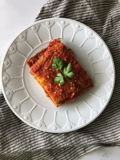 Hope you enjoy one of our favorite meals of all time. It is so worth the bit of work that goes into it. We promise! Once you do it once, you will find it easy the second time around. Also, making red sauce in large batches and freezing – saves lots of time and helps avoid the “oh no, I’m out of time- have to grab a jar of sauce” situation!